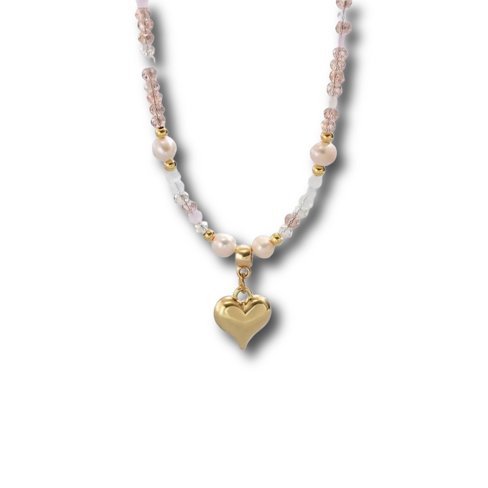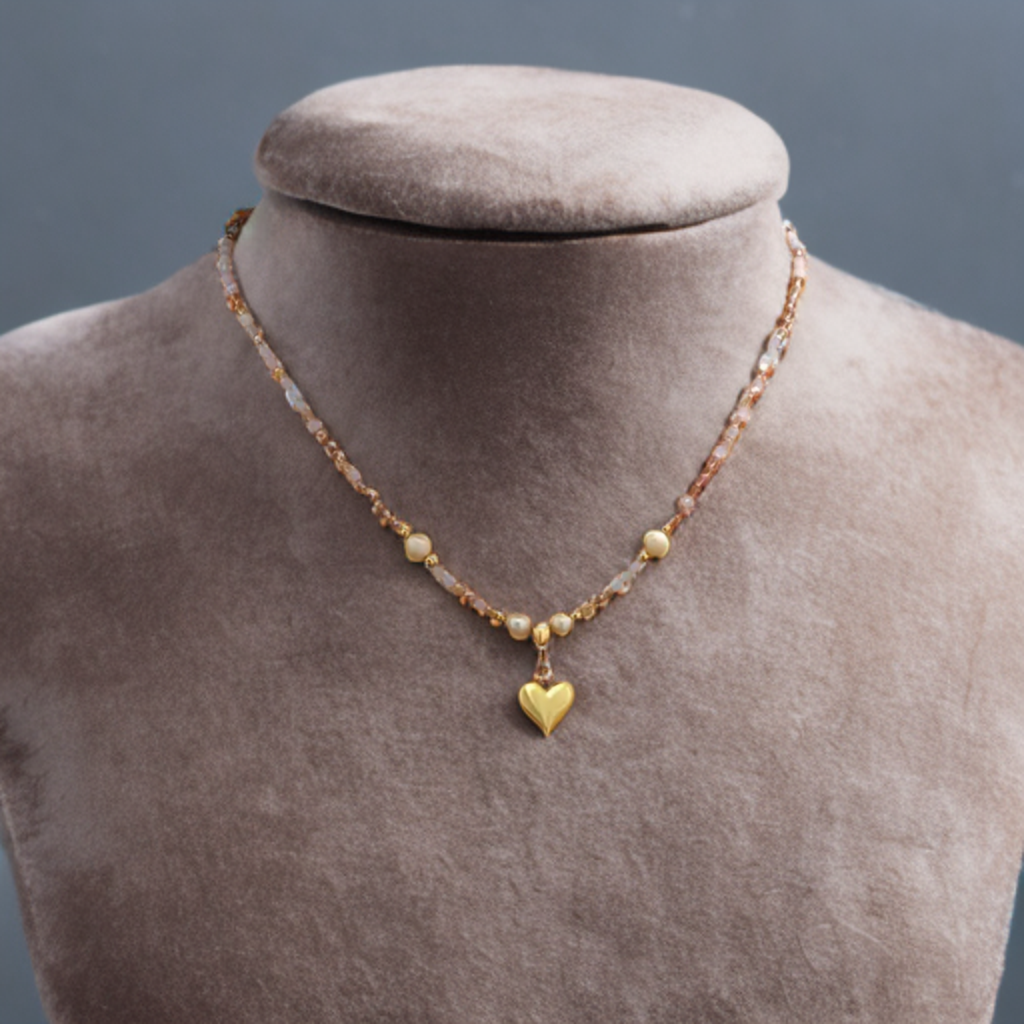 Halskette mit Herzanhänger und Perlensteinchen // H7