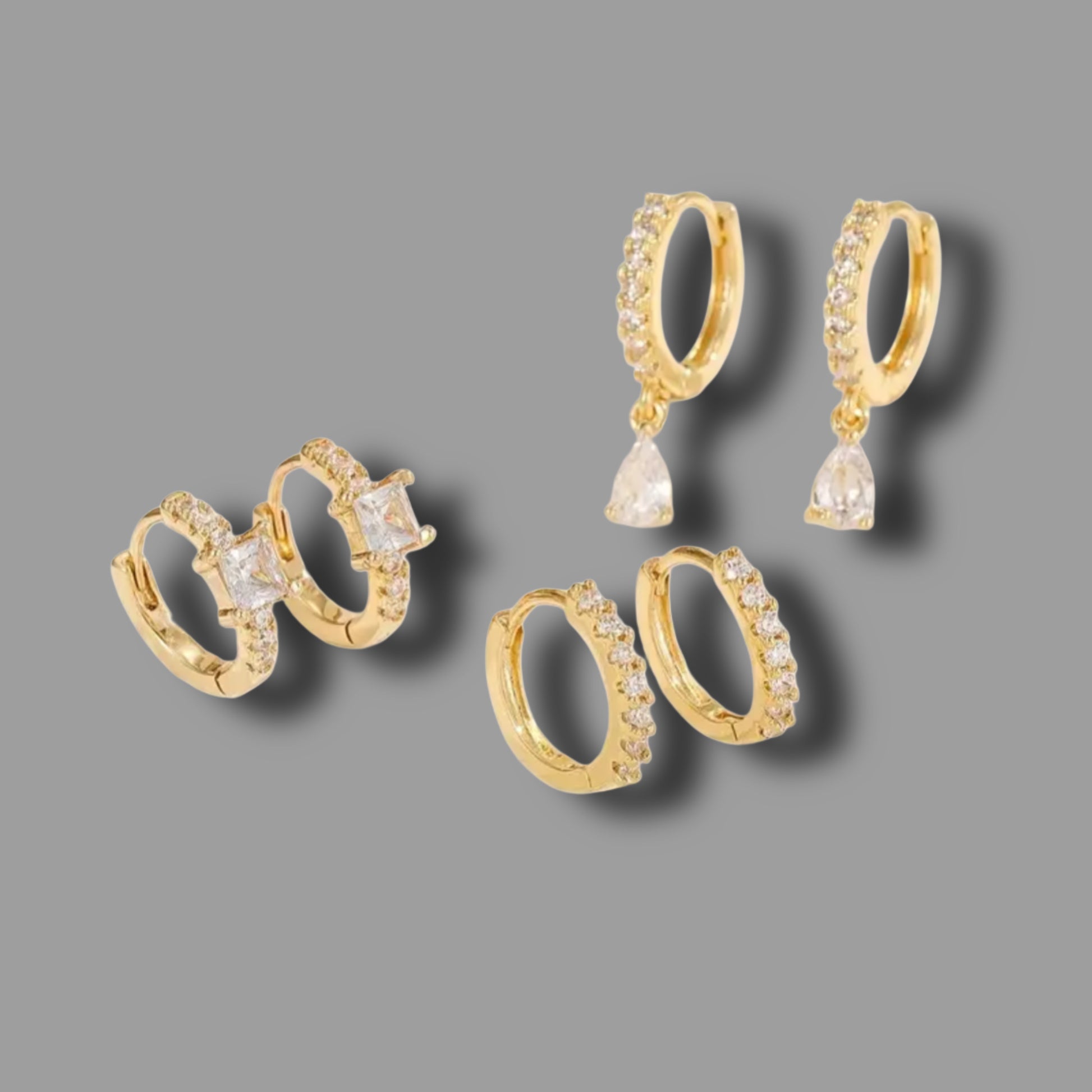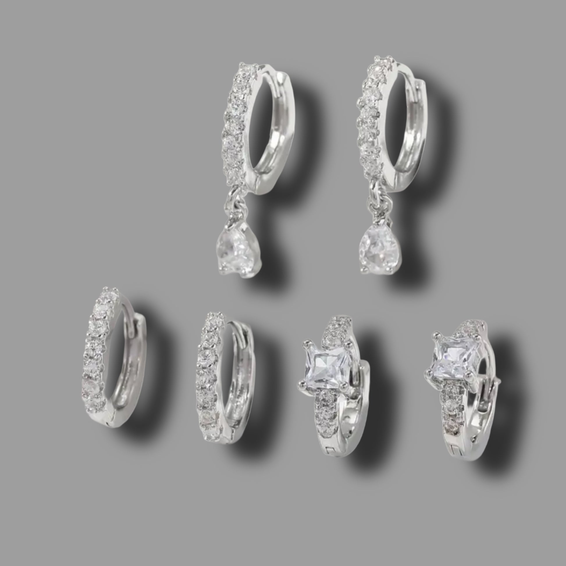 🌙 „Luna“ – 6er-Set geometrische Ohrringe mit Zirkonia in 6 Farben | Eleganter Schmuck für Damen